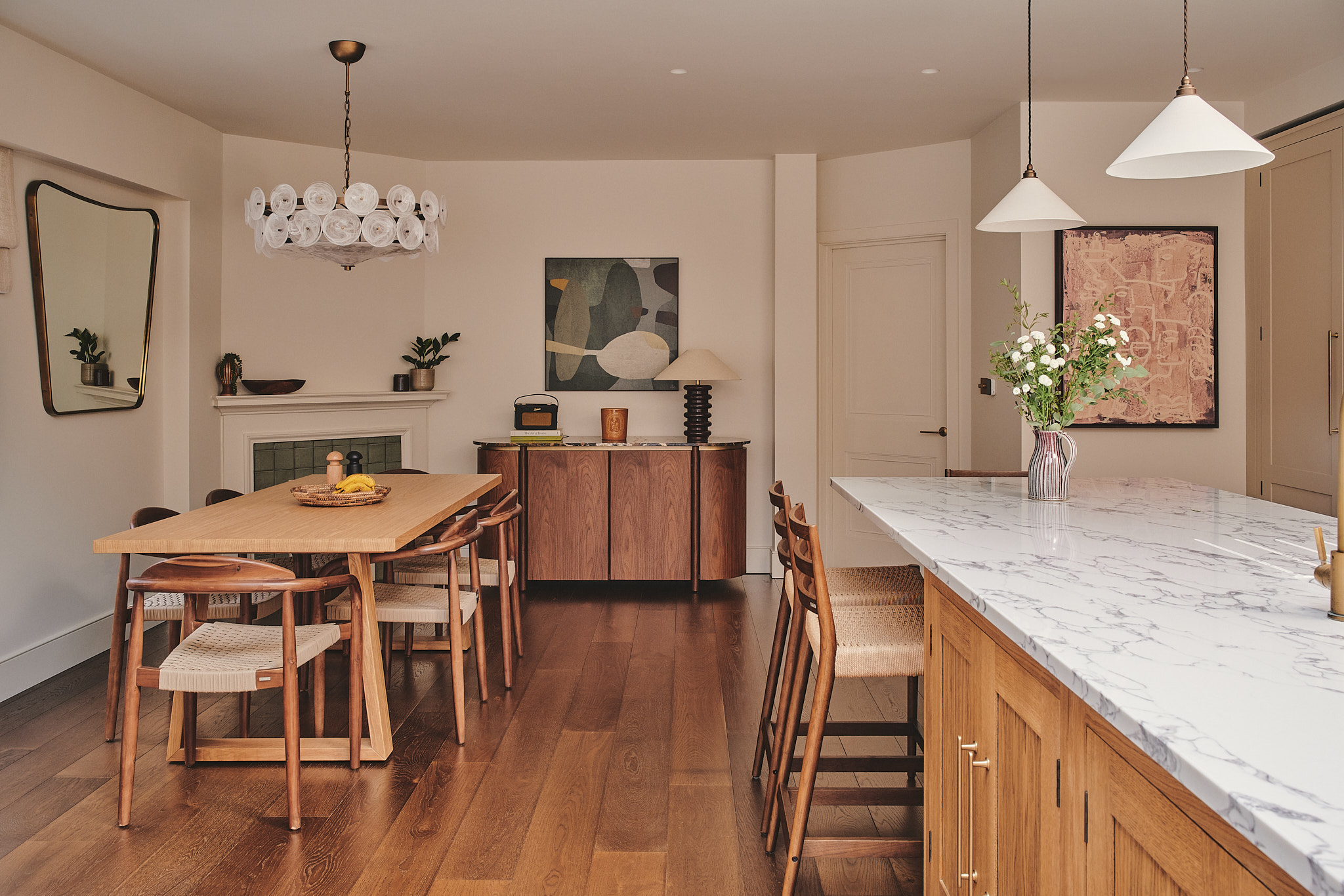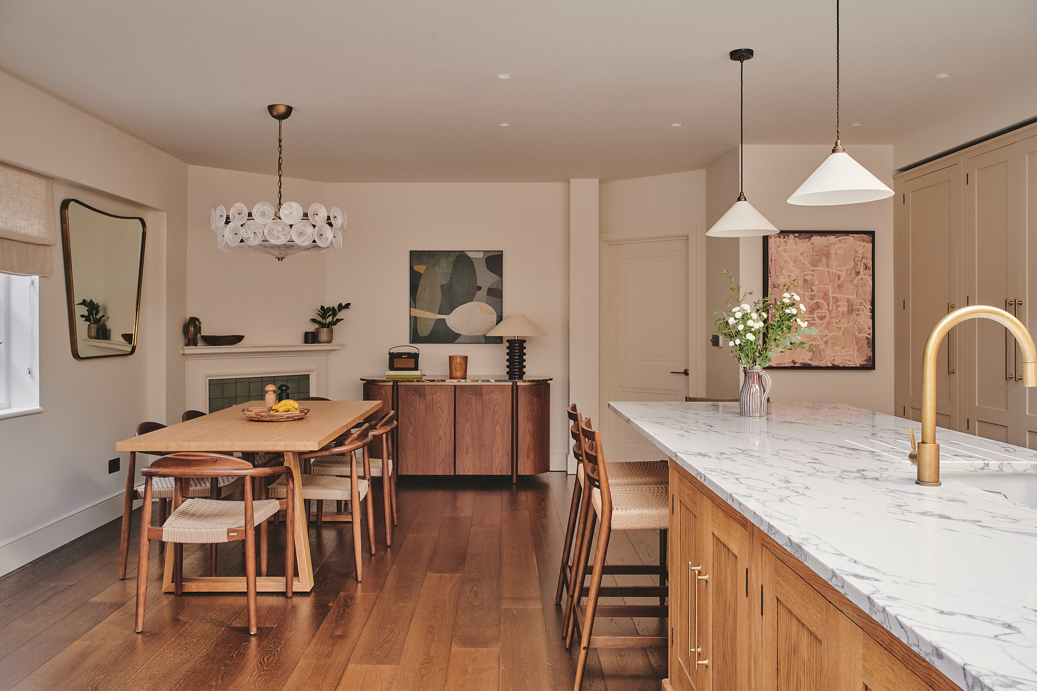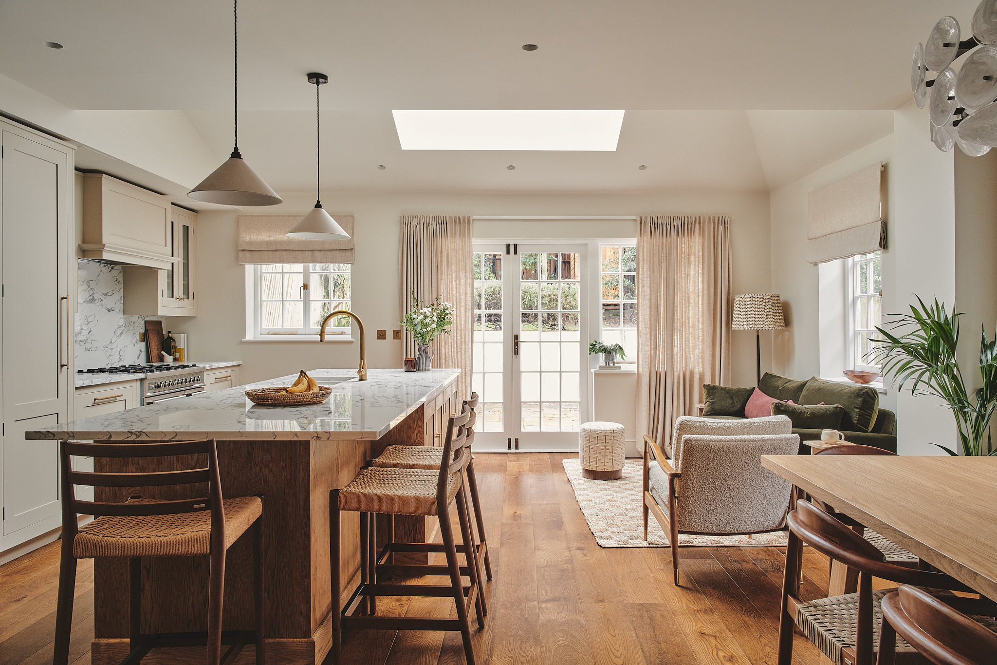 Hannah’s open plan space was designed to feel both inviting and practical, with clearly defined zones for cooking, dining and relaxing. Through layered textures, thoughtful colour choices and carefully selected furnishings, the space now feels cohesive, stylish and perfectly suited to modern living.